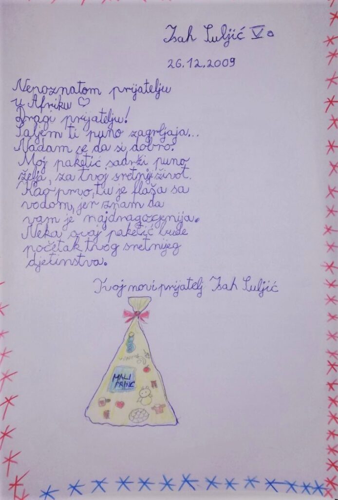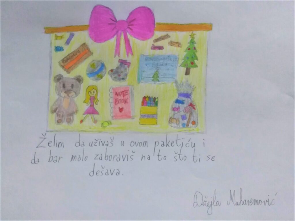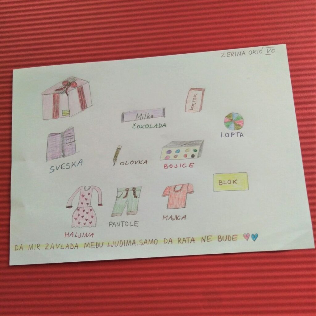 Povodom obiljeลพavanja 10. decembra, Meฤ‘unarodnog dana ljudskih prava, s vama danas dijelimo i likovne radove i poruke uฤenica i uฤenika 5. razreda JU Prva Oล  Srebrenik koje smo nedavno imali priliku upoznati na jednoj od naลกih radionica. Njihov zadatak bio je da razmisle kakav bi to paketiฤ‡ pripremili za djecu koja se trenutno suoฤavaju sa posljedicama odrastanja tokom oruลพanog sukoba, a nas su posebno dirnule poruke koje su ovom prilikom napisali svojim vrลกnjacima i vrลกnjakinjama.