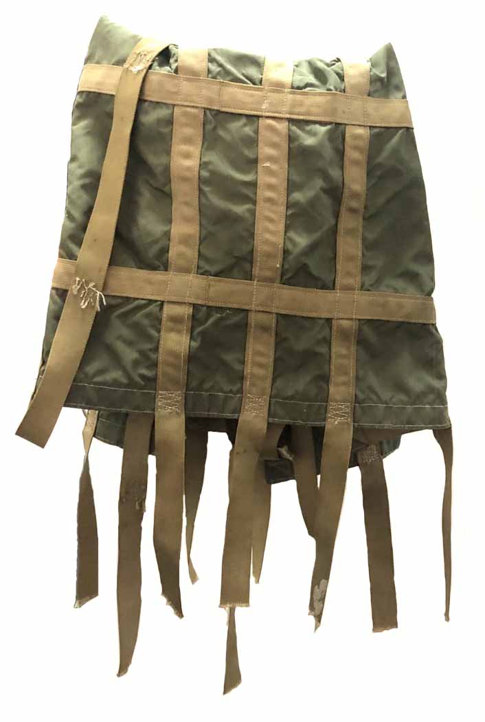 When the Grebak road—through which the residents of Goražde and refugees from the surrounding areas used to get food—was cut off, food and medicine began to be dropped from the air. From planes, they threw pallets weighing between seven hundred and one thousand kilograms, depending on the contents. Each package was protected by a tarpaulin like this.