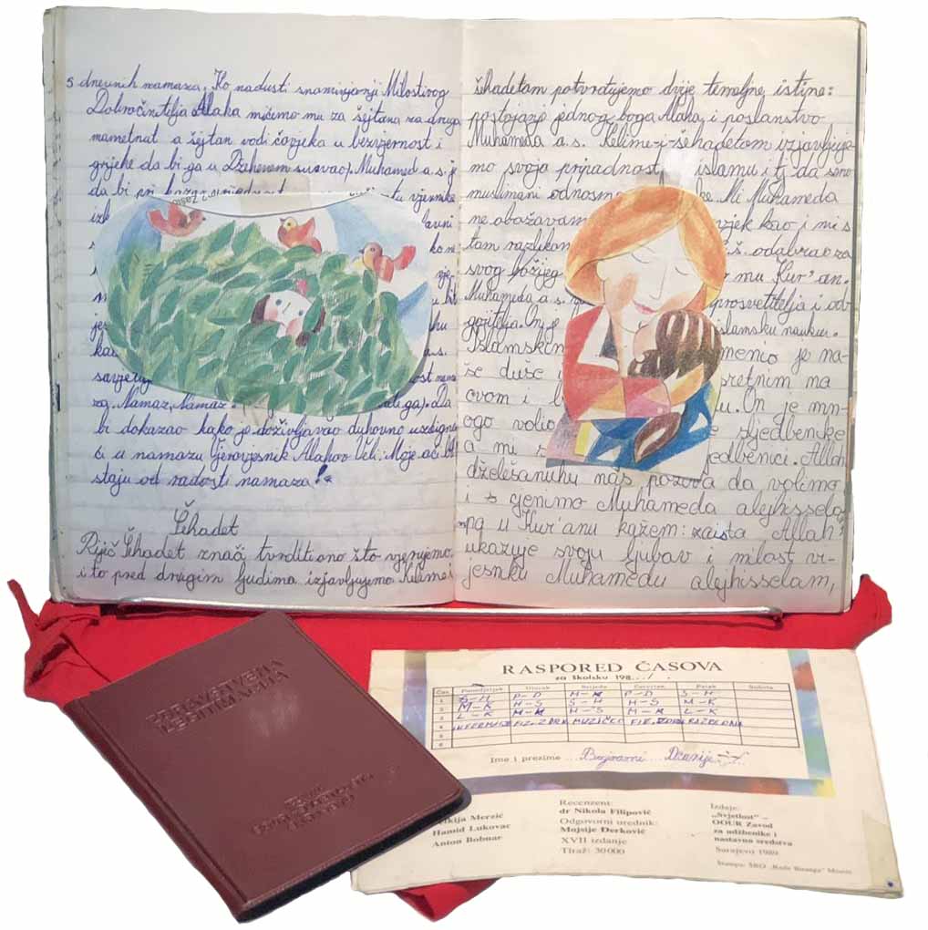 When Srebrenica fell and all of us were fleeing and trying to bring with us something of value, I brought this school backpack and stuffed an old encyclopedia and a couple of other books I read in wartime inside it. Mother was so furious that I had crammed in so many things that somewhere down the road she got rid of half of what I was carrying. The backpack was with me during my time in a concentration camp in Potočari. Just so I would feel useful, father put a bottle he found in the factory hall in the backpack and let me carry it around.