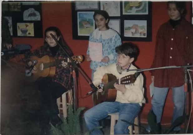 Apart from hunger and daily shelling, the memories of my musical beginnings are what tie me most to the war period. That’s when I picked up a guitar for the first time. I played it day and night, learning chords and songs from various songbooks. I gave my first performance on New Year’s Day, 1993, in the large hall of the Culture Center, where the “Children Sing Hits” event was held. After that, I performed at various shows and drama clubs. I have a particularly strong memory of an event organized by our neighbor Anka Ćurovac, which was held in the yard of our neighbors, the Heto family.
